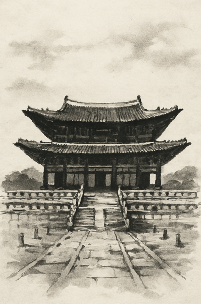 조선의 법궁인 경복궁은 왕의 즉위식과 신하들의 조회가 열리던 중심 궁궐로, 조선의 정통성과 위엄을 상징합니다. 근정전 앞마당은 웅장한 대리석과 기와지붕이 어우러져 장대한 분위기를 자아냅니다.