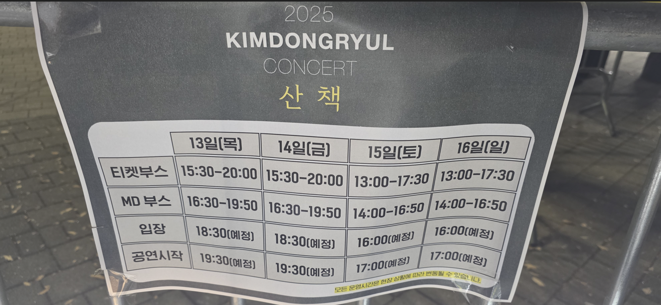 - 옆자리 캔맥주 홀짝: 1층 10구역 3열의 한 남성분이 공연 중 실제로 캔맥주를 마셨다. 소음을 줄이기 위해 함성 타이밍에 맞춰 캔을 열었지만, 특유의 맥주 냄새가 순간적으로 퍼져 불편했다.