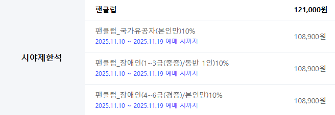 | 팬클럽 선예매 |