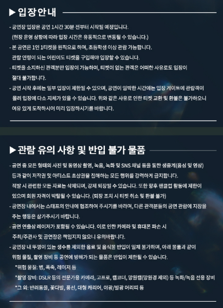 - 공연일에 현장 수령 시 신분증 필수