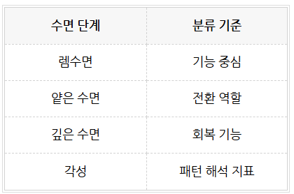 · 렘수면·얕은 수면·깊은 수면·각성이 자연스럽게 순환하는지