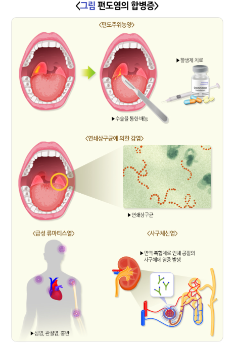 - 재발이 잦거나 합병증이 반복되면 편도 절제술 고려
