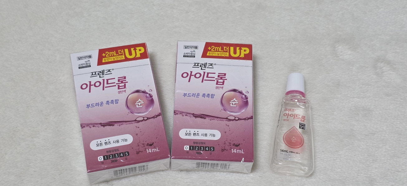 집에서 사용할 때는 아이드롭 점안액을 쓴다. 일회용 점안액보다 눈의 피로감을 덜어주는 느낌이 있고, 촉촉함도 비교적 오래 유지된다.