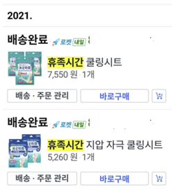 2021년부터 쿠O에서 휴족시간 쿨링 시트와 발바닥 지압 자극 쿨링 시트를 구입해 사용했다.