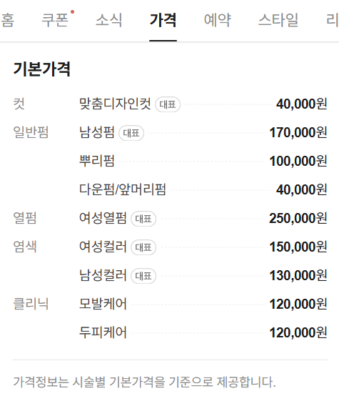 의자에 앉고 커트보를 두르는 순간 디자이너가 가격표를 가져온다.