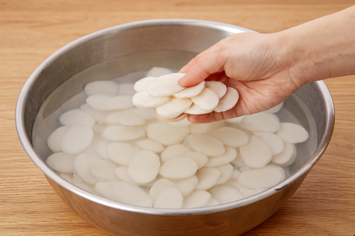 냉동 떡은 찬물에 20~30분 해동 후 사용
