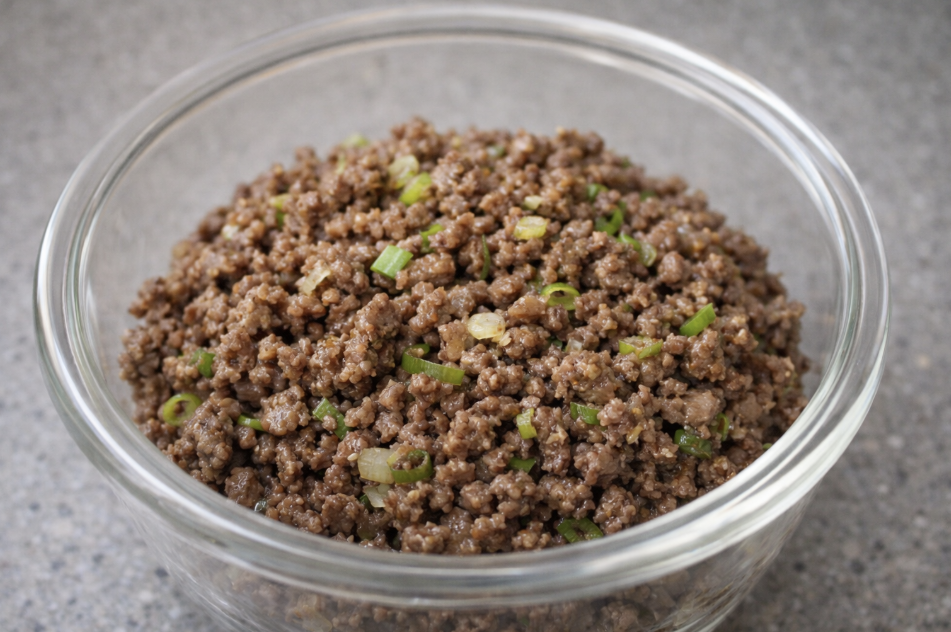 1️⃣ 핏물 제거 후 결 반대 방향으로 얇게 채 썹니다.