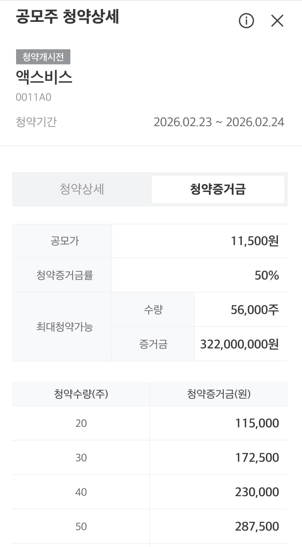 총 청약 금액 : 20주 × 11,500원 = 230,000원