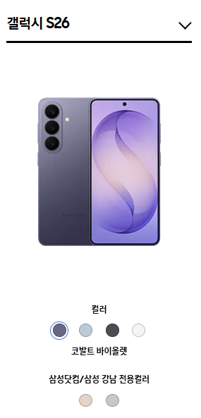 갤럭시 S26 시리즈는 기본 컬러와 삼성닷컴 전용 컬러로 나뉘어 출시된다.
