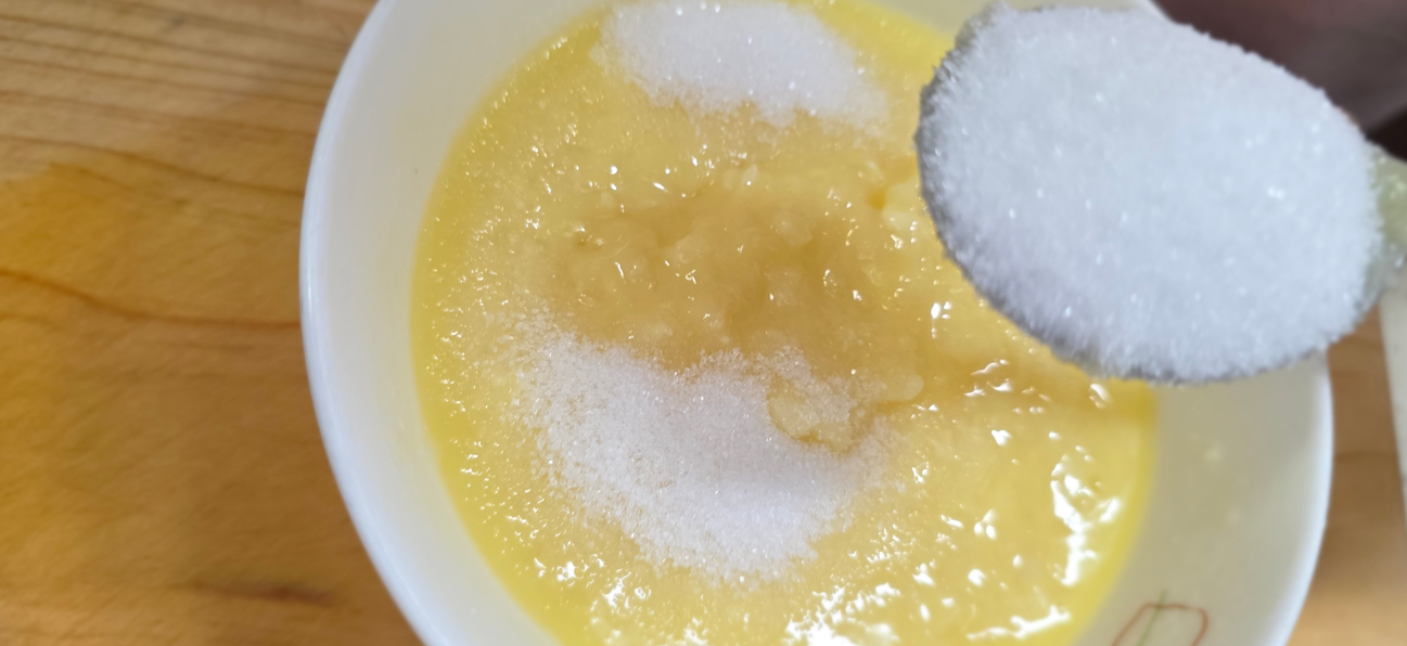 4. 설탕 5T를 듬뿍 넣고 섞는다.(설탕은 이래도 되나 싶을 정도로 아주 듬뿍 넣어야 맛있는 마늘빵이 완성된다.)