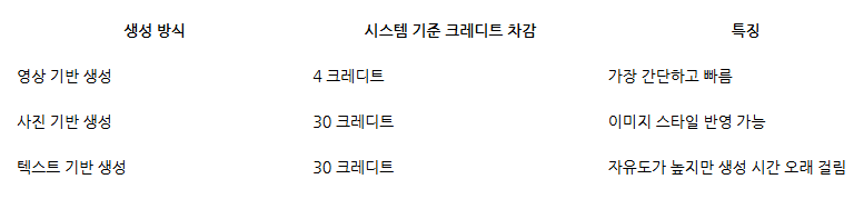 참고: 영상 생성 시 크레딧 차감 구조