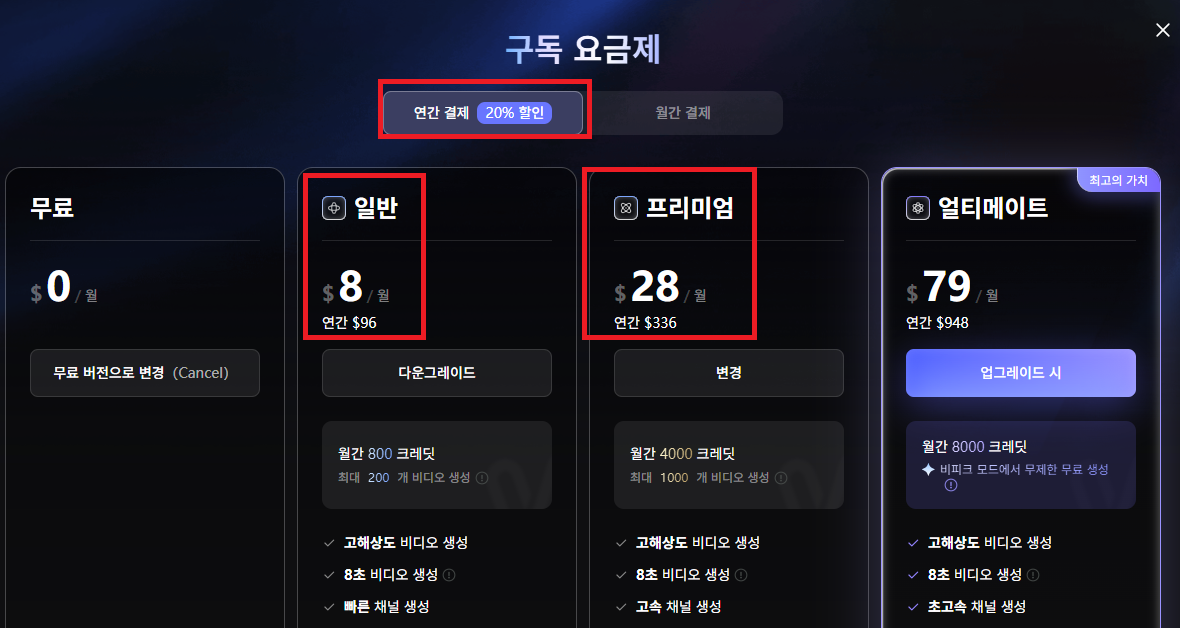 유료 결제 (Vidu Pro) 체감