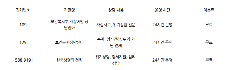 자살 생각이 들 때 꼭 알아야 할 정보 “내 마음이 무너질 때, 누를 수 있는 전화번호”