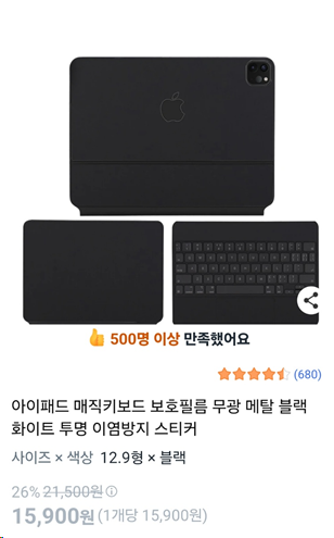 매직키보드 구입 직후 가장 먼저 느낀 건 “이염이 정말 잘 된다”였다. 그래서 바로 쿠팡에서 매직키보드 전용 TPU 키스킨을 구입했다.