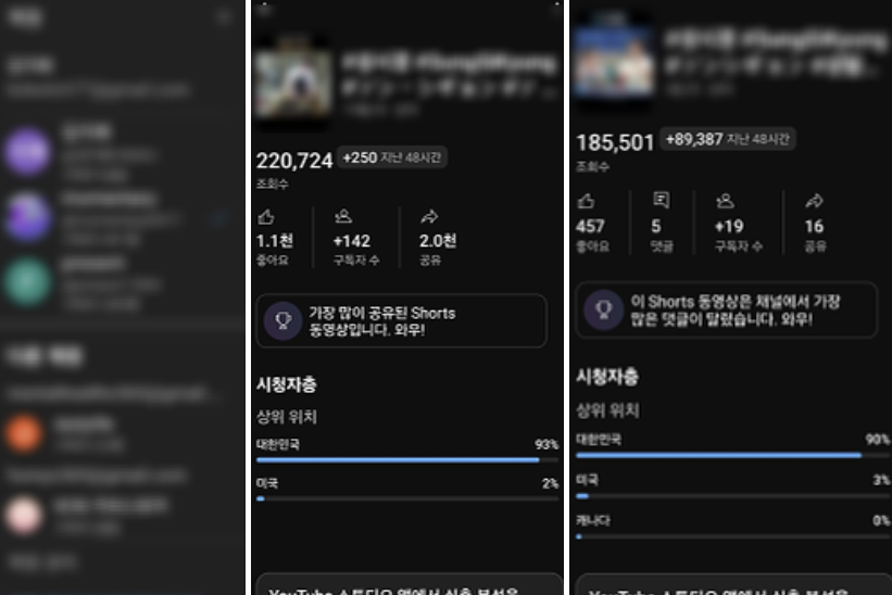 여기도 저작권 신고를 한 번 받아 최근 영상 대부분을 비공개 처리했다. 대신 짧은 쇼츠 편집으로 방향을 전환했다.