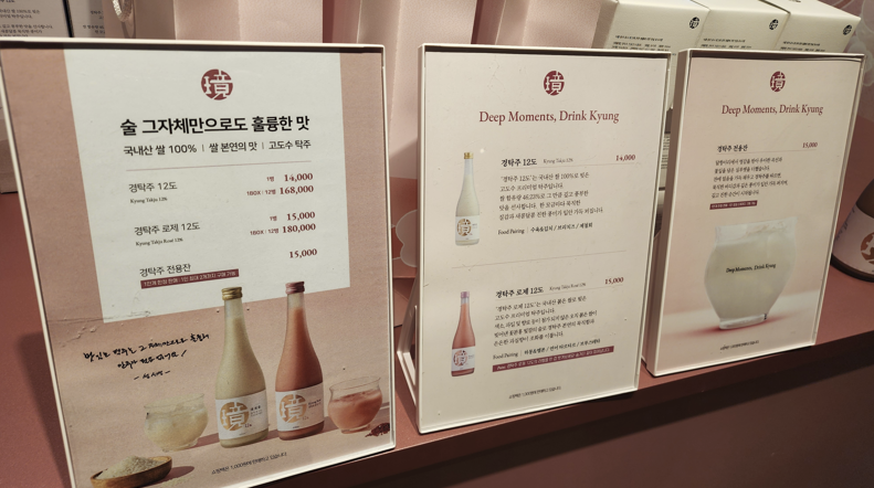 특히 바로 옆에 있던 SK-II 팝업스토어의 강렬한 레드 톤과 세련된 연출과 비교되면서 경탁주 부스는 더 초라해 보였습니다.