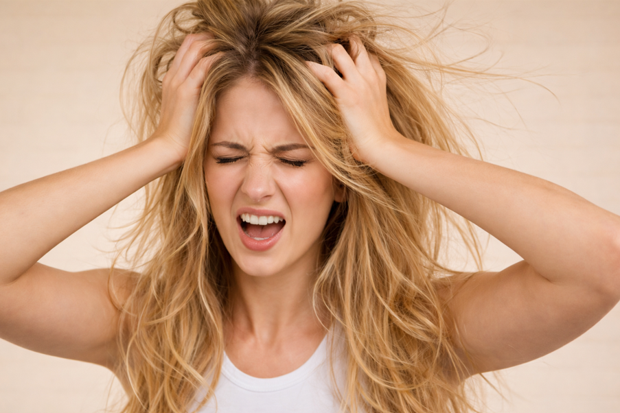 곱슬 뿌리가 자라면 두피에 머리카락이 들러붙는다.