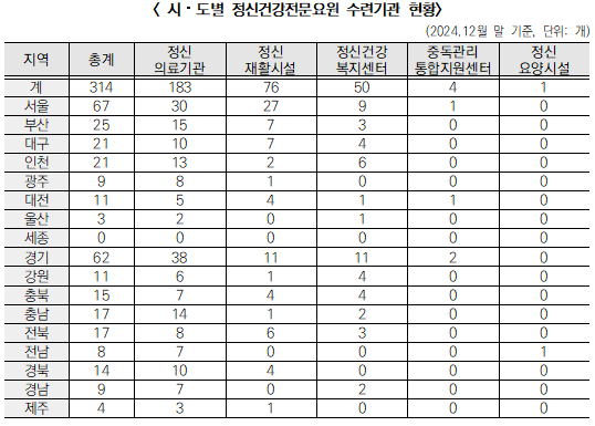 ● 「정신건강증진 및 정신질환자 복지서비스 지원에 관한 법률」 시행령 제12조, 제38조