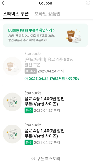 이벤트 의도에 맞게 오후 시간 디카페인 커피를 부담 없는 가격으로 마실 수 있어 좋았습니다.